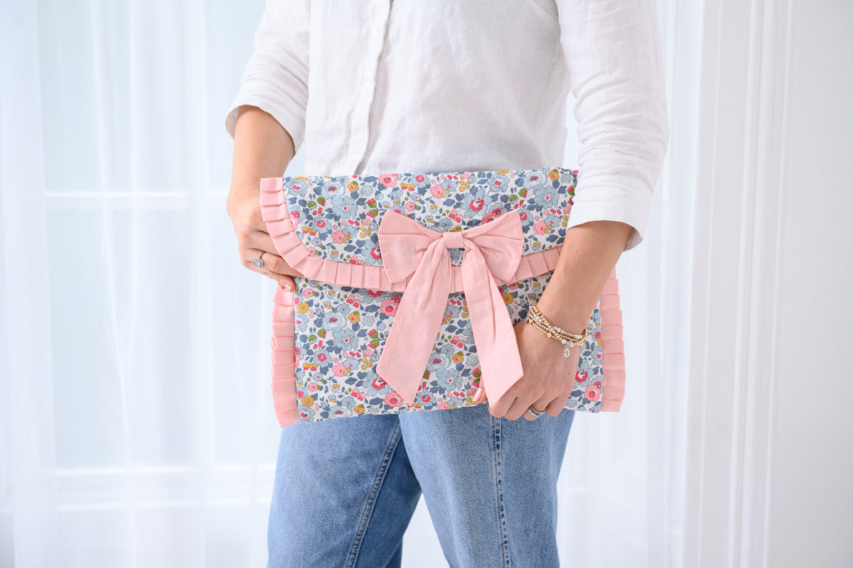 With a carefully colour-matched pink trim and bow to compliment the classic Liberty print Tana Lawn™ Betsy Print.