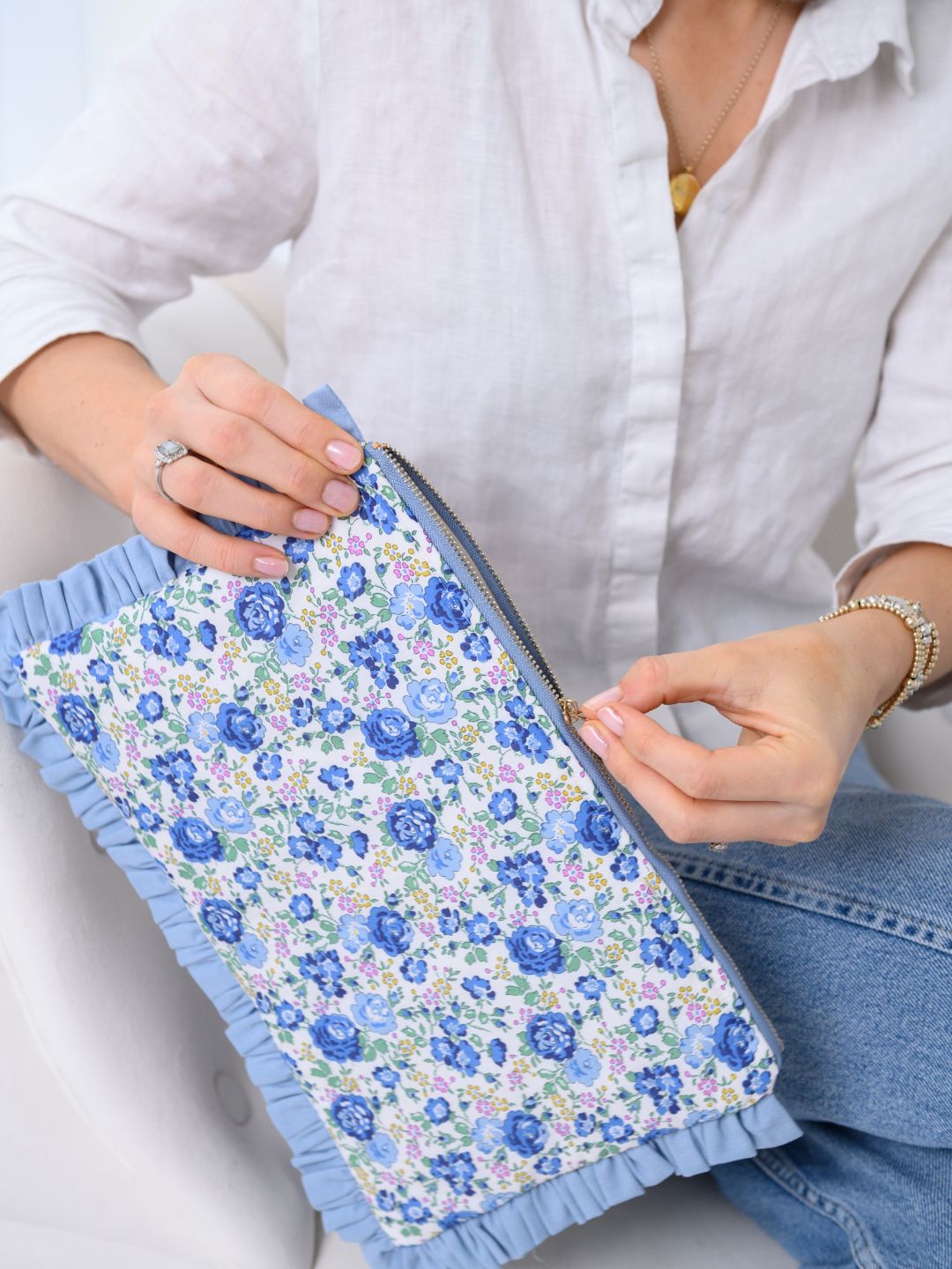 Kitty | Blue Pouch made with Liberty Fabrics Tana Lawn™